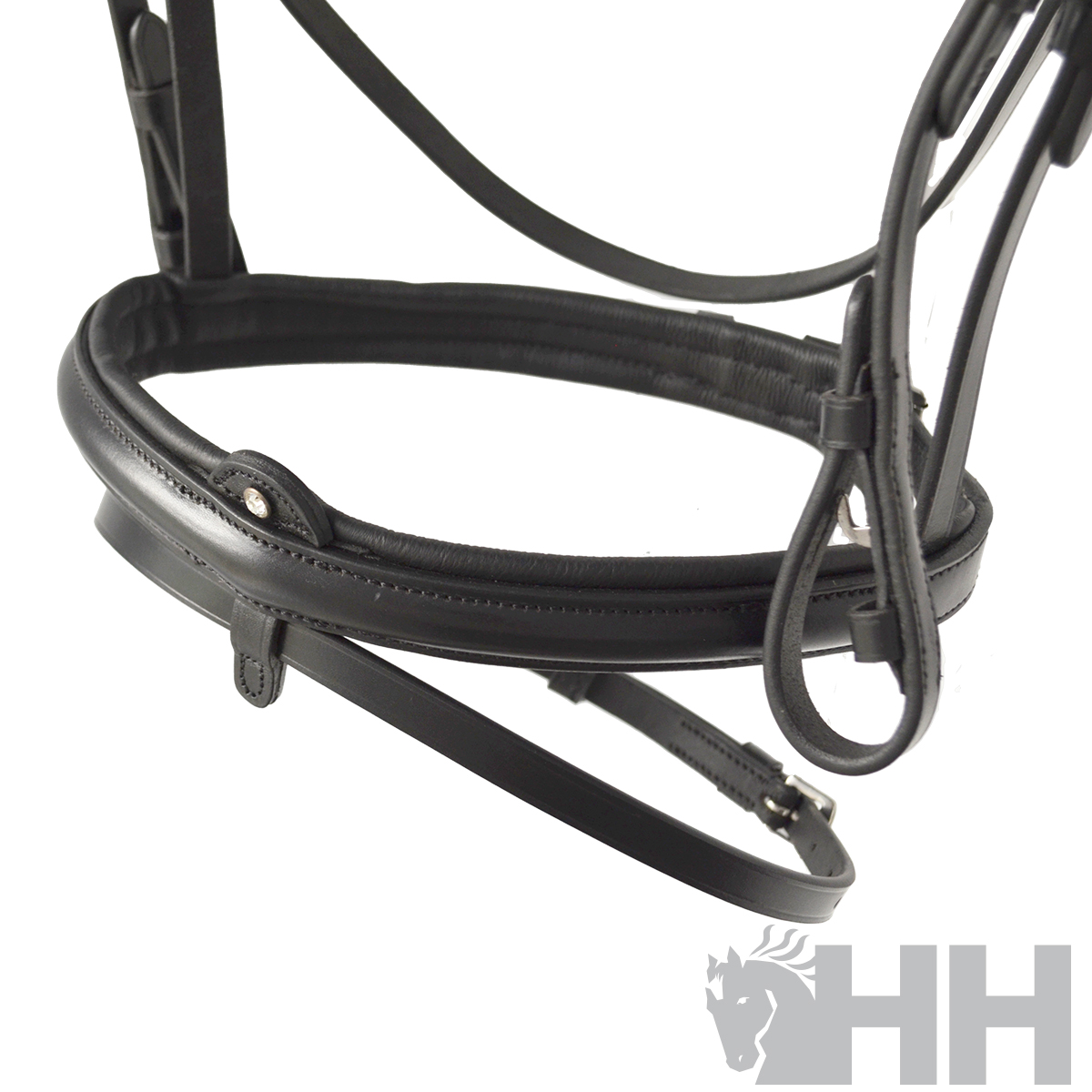 Detalle de frontalera con cristales y cristal sobre el centro de la muserola.