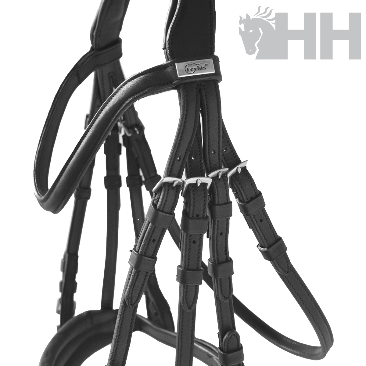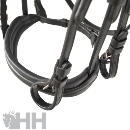 Cabezada realizada con cuero doble engrasado de muy alta calidad y hebillaje de acero inoxidable.