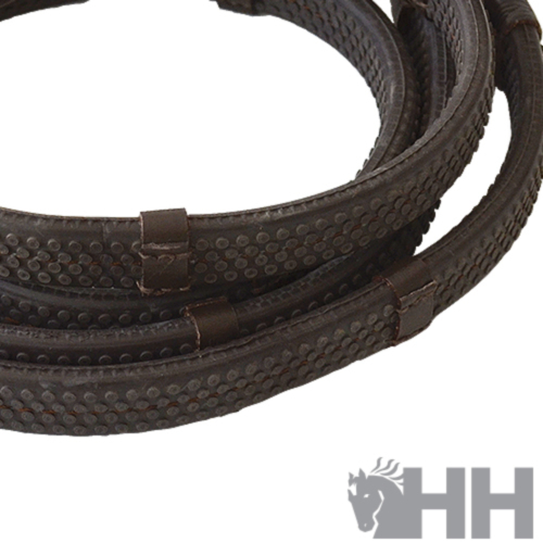 Riendas de goma de muy buena calidad con tacos cosidos para una mejor referencia del jinete. La goma tiene una excelente capacidad de agarre.
