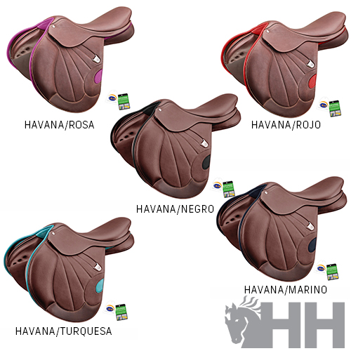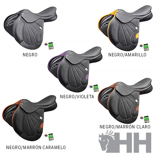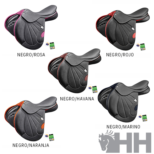 - SWEETSPOT: centro de gravedad del asiento de la montura ligeramente adelantado para facilitar tanto la posición del asiento del jinete de alto rendimiento como su predisposición a los movimientos del salto.