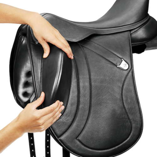 Esta silla, como todas las sillas BATES, contiene los sistema patentados CAIR en los bastes y EASY-CHANGE FIT SOLUTION que permite adaptar la silla tanto en el puente como en los bastes, a la morfología de cualquier caballo en cuestión de minutos y de una manera totalmente parametrizada y reversible.