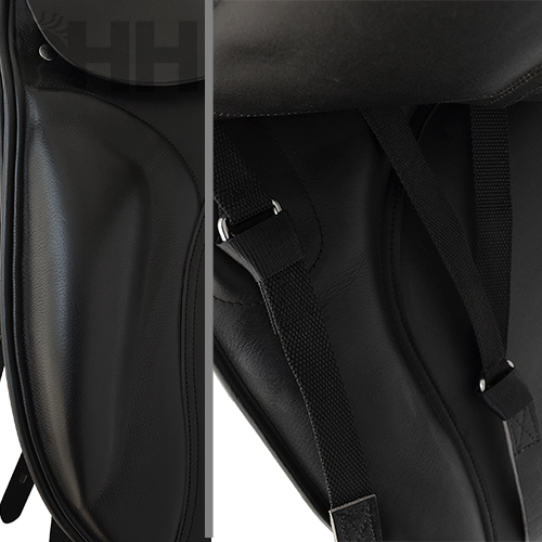- Taco anatómico fijado sobre el faldón exterior para lograr una posición idónea de la pierna del jinete.