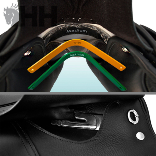 - Sistema muy sencillo de intercambio de puentes para poder adaptar la silla a la morfología de cualquier caballo. La silla incorpora de serie el puente negro de 30 cm pero se pueden adquirir por separado puentes de 32 y 34 cm respectivamente.