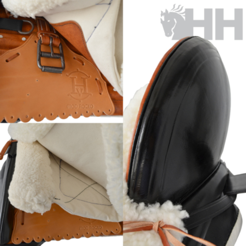 Todas las sillas vaqueras LUDHIS se suministran con zalea de borreguillo natural, aciones de estribo, cincha y baticola. La manta estribera y los estribos se suministran a petición del cliente.