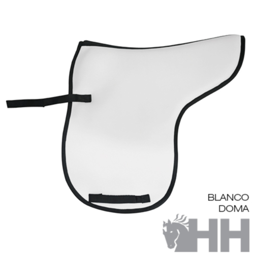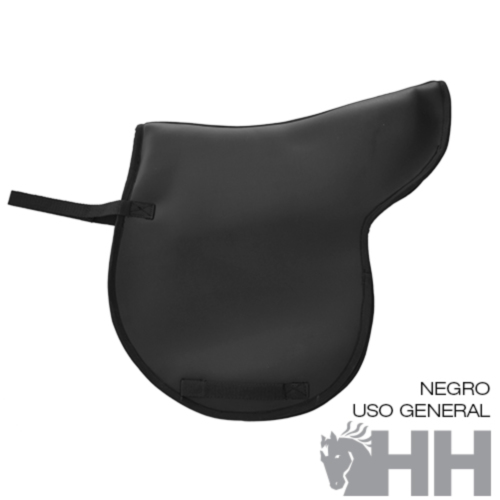 Totalmente impermeable y muy fácil de limpiar. Tamaño ideal para las sillas inglesas de doma clásica y uso general. El relleno interior de goma y gel se encuentra ampliado en la zona de la silla para realizar funciones de salvacruz y absorber los impactos para el cuidado del dorso del caballo.