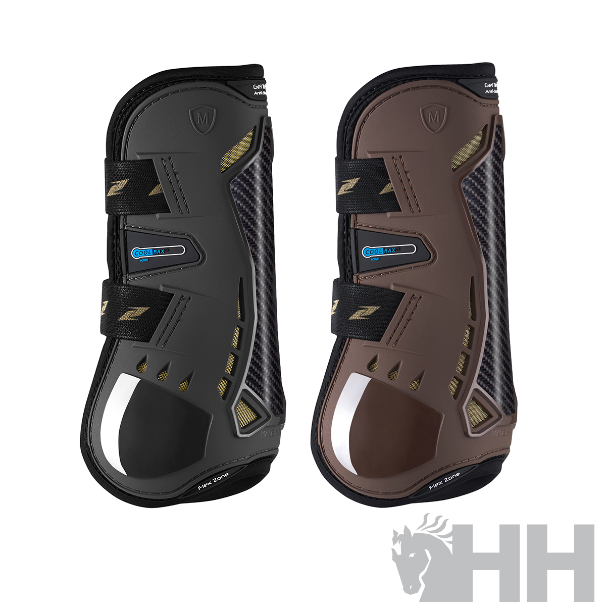 La estructura externa está equipada con un nuevo inserto especial de fibra FLEX-CARBON (pendiente de patente) que mejora la capacidad protectora del protector sin renunciar a la flexibilidad y al ajuste perfecto a la mano del caballo, lo que permite que el caballo alcance nuevos niveles de rendimiento.