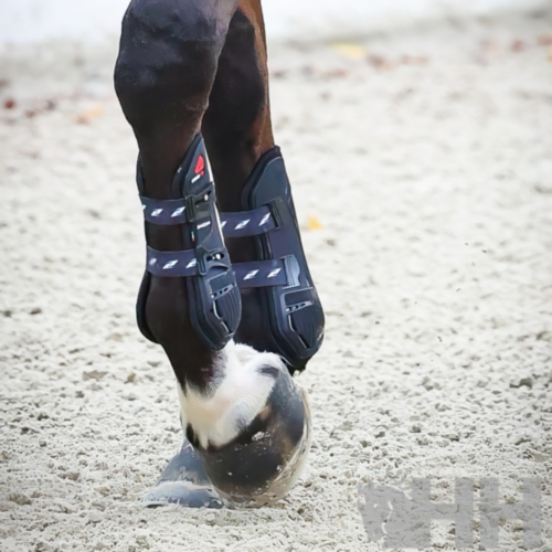 Los elementos de Fibra de Carbono, aún más resistentes y extensos, crean una barrera térmica para proteger las articulaciones del caballo del calor generado por la fricción y aumentar la resistencia a los impactos.