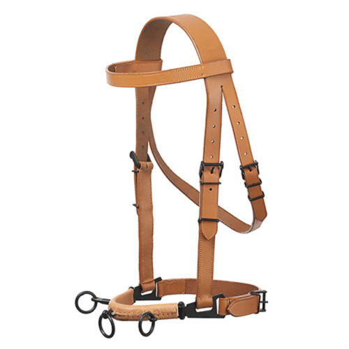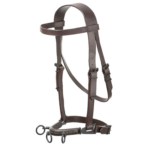 Cabezada de cuero con una excelente relación calidad-precio. Anilla central giratoria.