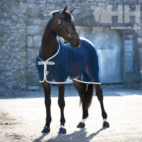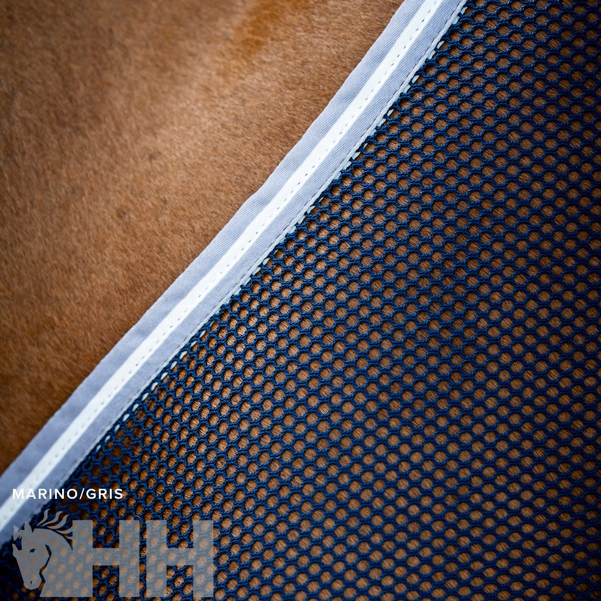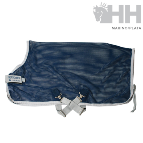 Manta de red realizada en poliester reforzado. Diseñada bajo estilo y corte clásico, elimina fácilmente la humedad del caballo. Con un solo cierre frontal de velcro, cinchuelos cruzados desmontables y cordón en la cola. Se adjunta una bolsa red de mano para su almacenamiento o lavado.
