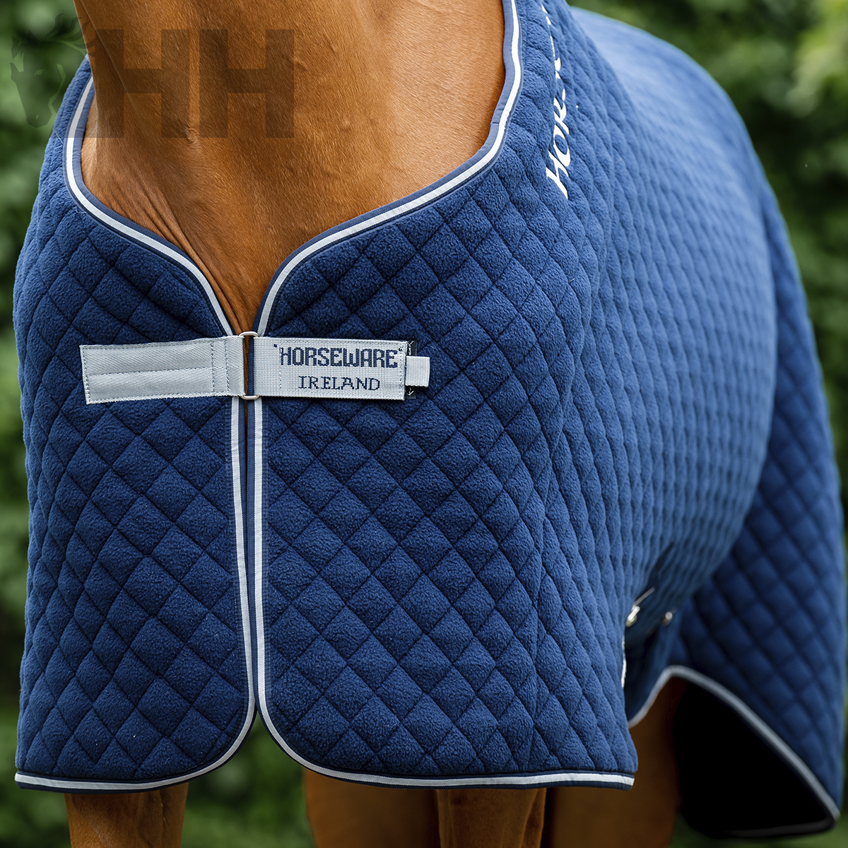 La capa interior y exterior de forro polar combinada con relleno de fibra acolchado ofrece la máxima transpirabilidad y propiedades de absorción de humedad mientras mantiene el caballo caliente. Esta manta de 100 g proporciona una retención de calor excepcional, lo que garantiza que los grupos musculares clave se mantengan calientes durante el proceso de enfriamiento.