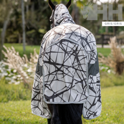 El patrón monocromático puede ser una forma sencilla de proteger a los caballos al ayudar a evitar que las moscas se posen en su cuerpo. Las líneas negras en capas sobre un fondo gris actúan para crear una ilusión óptica en el ojo de una mosca. Rompe la forma del caballo, por lo que los insectos no pueden identificarlo como un objetivo.