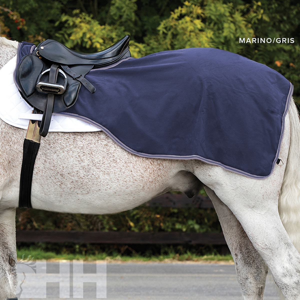 Manta de ejercicio con corte y hueco para la silla, que permite que las piernas del jinete trabajen eficazmente.