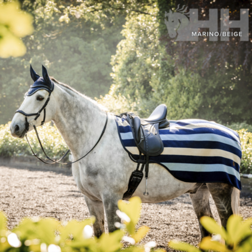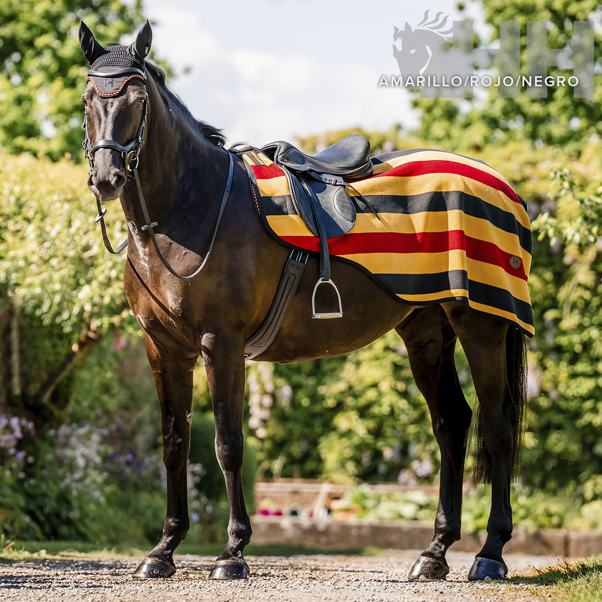 Su diseño contorneado con corte para la silla de montar permite al jinete apoyar las piernas de forma clara y sin interrupciones, a la vez que mantiene los cuartos traseros y los principales grupos musculares del caballo cómodos, secos y cálidos.