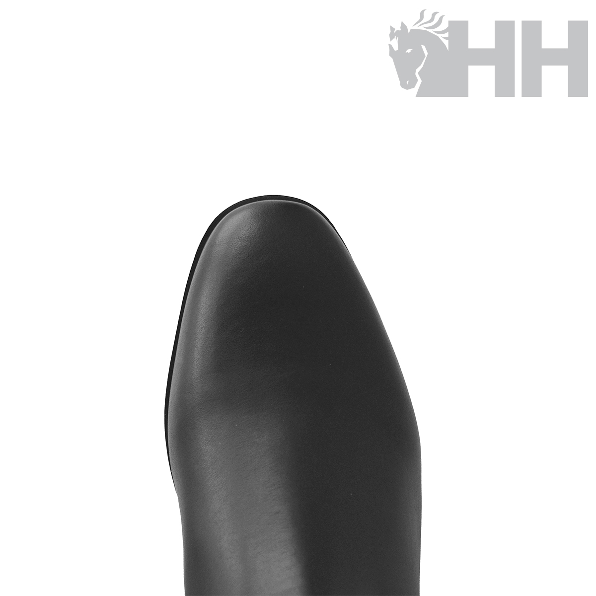 Bota para doma clásica realizada en cuero natural de dos capas o dos zonas diferencidas. El exterior es un boxcalf resistente y lujoso y el interior es un cuero vegetal suave, con mucho agarrre pero muy resistente. Mediante esa suavidad del cuero y el agarre, el jinete tiene un mayor contacto con el faldón de la silla y el control del caballo. Además la bota cuenta con forro interior tipo Cambrelle para absorción del sudor, taco con sistema de absorción de impactos y en la parte porterior cuenta con un filo interior semirígido para mantener la altura y rigidez de la bota.