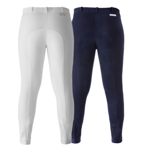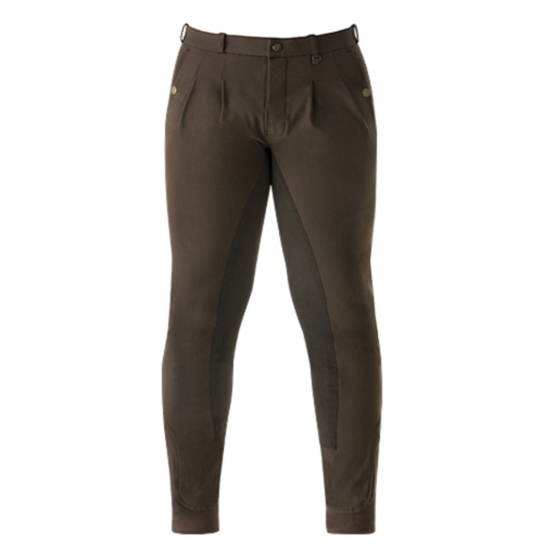 Pantalón hombre con culera de cuero sintético y con pinzas y dos bolsillos frontales laterales con cierre de corchete.
