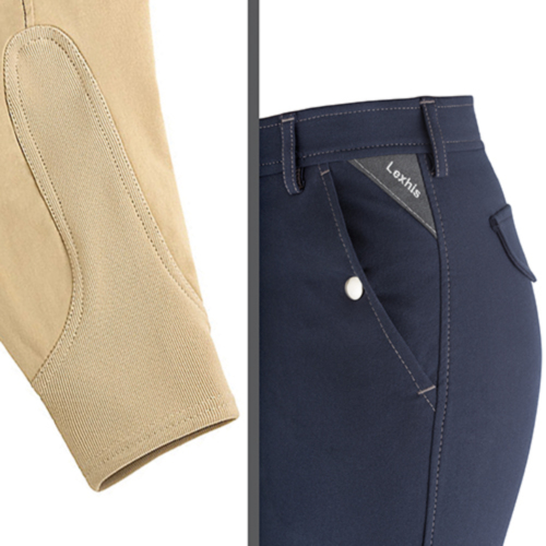 Cintura baja, bolsillos laterales con cierre a presión, costuras a contraste (excepto color blanco), toda la culera de cuero sintético con mucho agarre y sistema elástico de cierre en el tobillo.