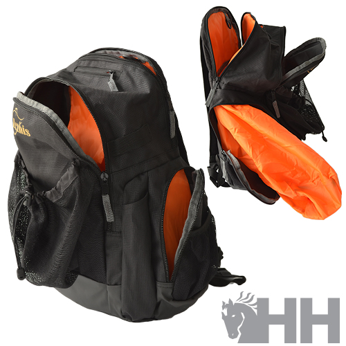 Mochila cómoda y resistente ideal para utilizar durante los concursos. Además de su diseño atractivo y simple, la mochila también tiene muchos bolsillos muy prácticos, incluso una bolsa lateral impermeable donde guardar la ropa sucia y evitar que manche el resto del contenido. También dispone de una red eláctica delantera que permite llevar muchos y diferentes objetos, desde una simple botella de agua hasta el indispensable casco para la competición.