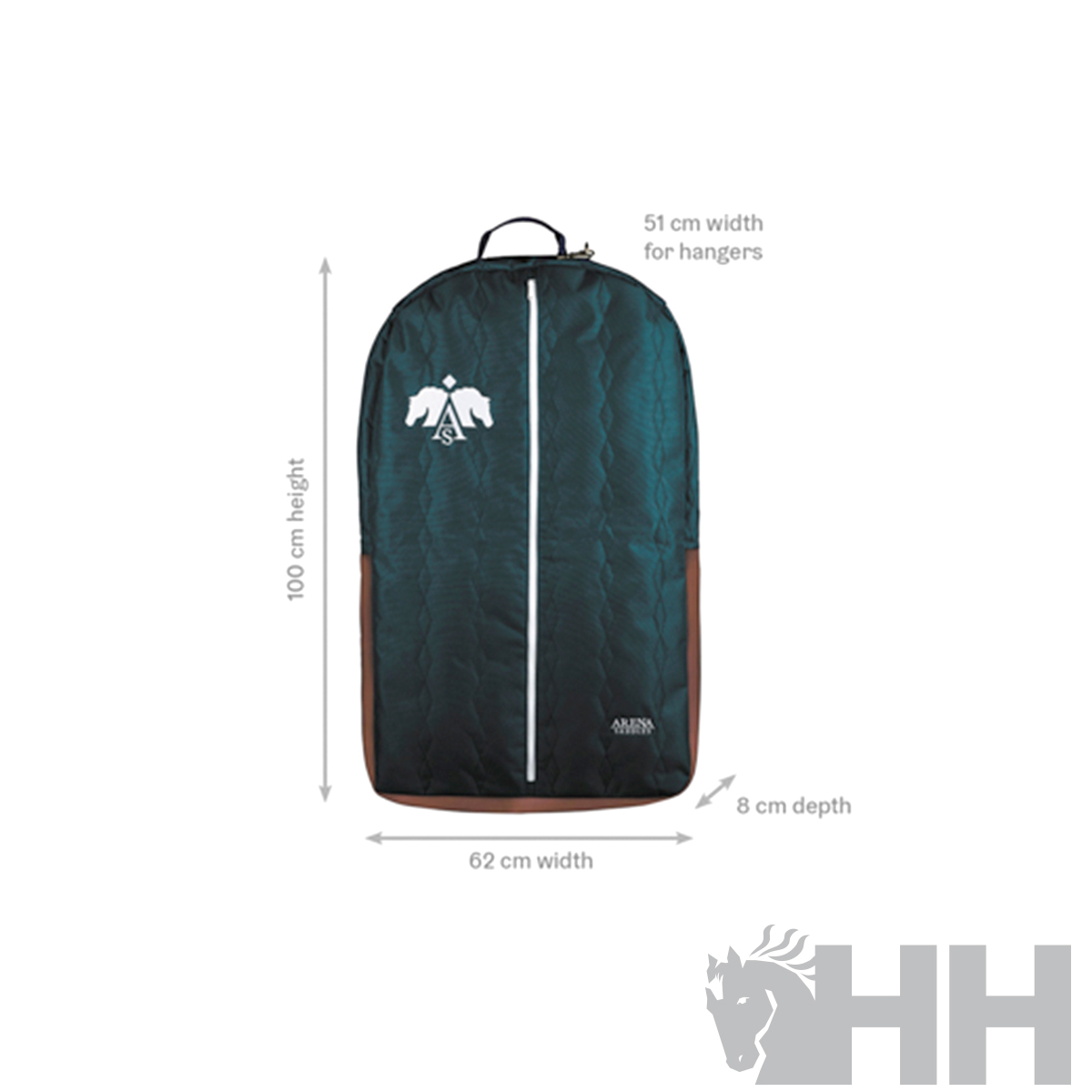 Diseñado para participar en concursos, este portatrajes grande puede contener fácilmente cuatro atuendos y accesorios para la competición. Los jinetes pueden acceder rápidamente a sus prendas con la cremallera de cuerpo entero y optar por colgar su portatrajes a través de los ganchos para colgar abrigos o la correa superior desmontable. Para la tranquilidad del jinete, la bolsa tiene acolchado adicional y en la base un material muy resistente para proteger contra las áreas húmedas.