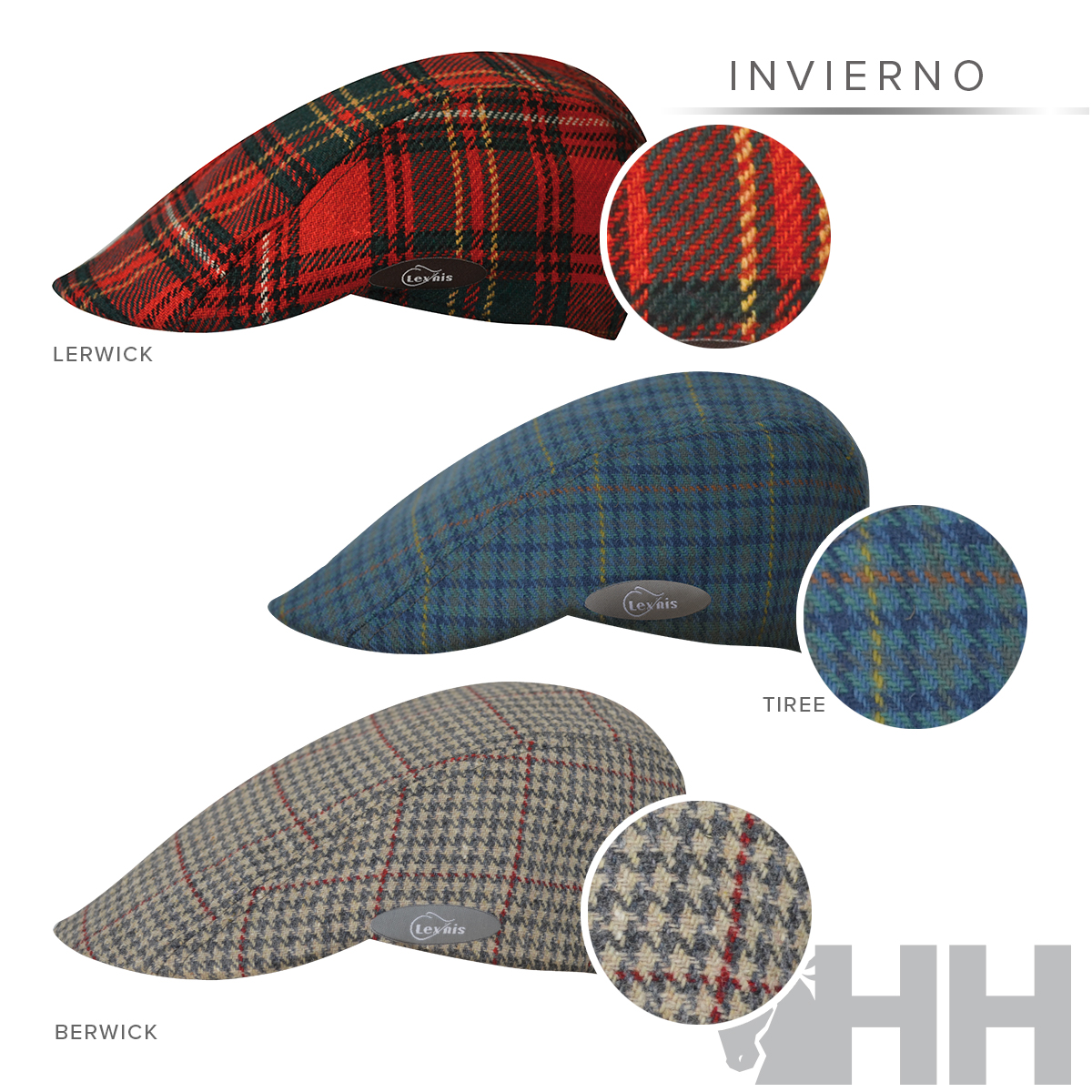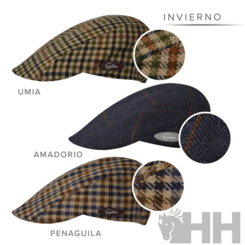 Tradicionales gorras viseras de estilo y corte tipo inglés ceñido y muy en consonancia con las tendencias actuales.