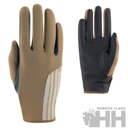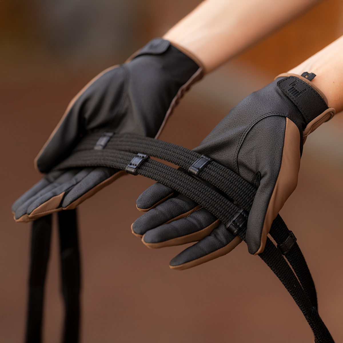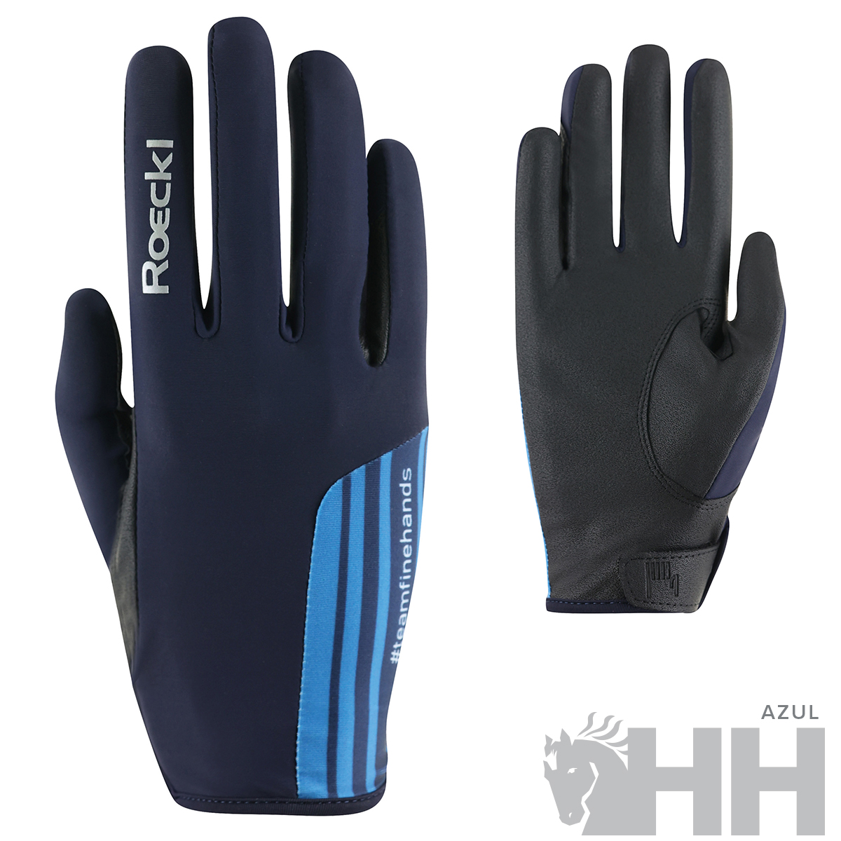 Manos finas, consciencia y respeto por el compañero equino: MESSARA y la etiqueta #teamfinehands ayudan a los jinetes a expresar su convicción en la equitación de calidad y el trato amable y humano a sus caballos. En cuanto se los ponga, sabrá lo que eso significa: este guante de equitación de verano facilita la comunicación sensible a través del tacto y los impulsos. El nylon mate, extremadamente fino y elástico, y el material Dura Elastic estampado en el dorso garantizan un ajuste cómodo y una libertad de movimiento sin obstáculos al manejar las riendas. Además, toda la palma está confeccionada con un material de PU suave, especialmente táctil, fino y antideslizante, para facilitar la comunicación sensible con el caballo. Práctico y cómodo: MESSARA se ajusta cómodamente a la muñeca mediante un cierre de velcro en la palma. Este modelo es especialmente adecuado para el manejo de riendas de cuero o de lona. MESSARA se puede lavar a máquina a 30 °C (86 °F). No contiene cuero.