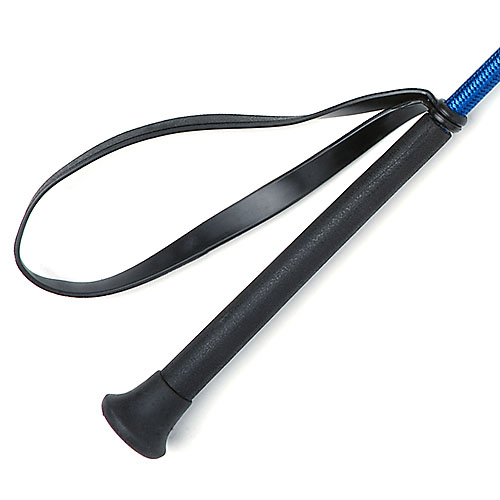 Excelente fusta de iniciación con 65 cm. de longitud, tralla con lengüeta y empuñadura con asa, tope y realizada con un material con mucho agarre.
