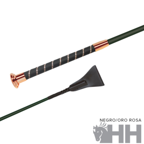 Estructura interna de fibra de vidrio. Empuñadura forrada de tejido sintético muy resistente con suave tacto a seda y con elegantes cristales brillantes. Las piezas metálicas pueden ser en color cromado u oro rosa y como novedad en toda la colección también en azul con cristales en azul.