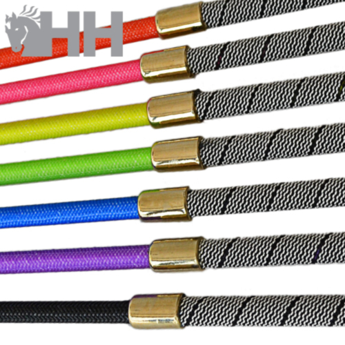 Fusta de doma con terminación en tralla. Empuñadura realizada con un tacto de goma suave pero con mucho agarre. Disponible en una serie de vistosos colores.