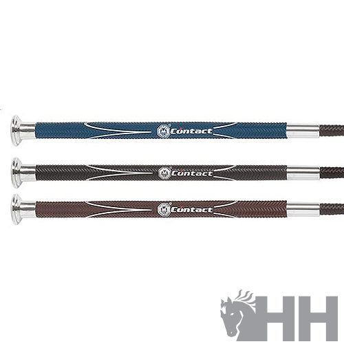 Fusta con tralla, el cuerpo forrado de nylon, empuñadura realizada en poliuretano con mucho agarre y tope metálico.