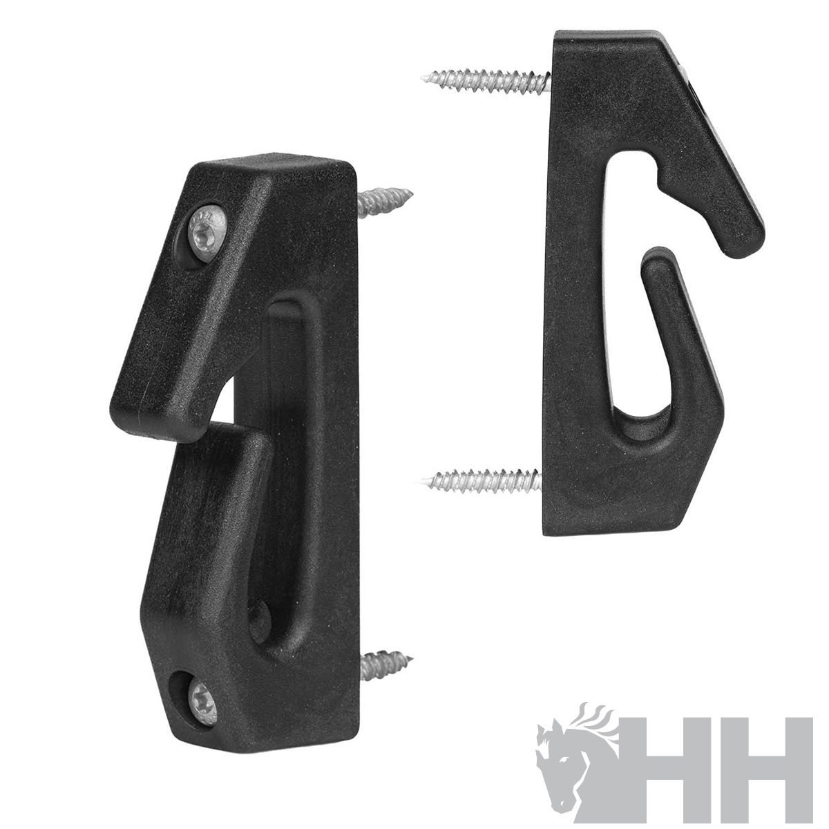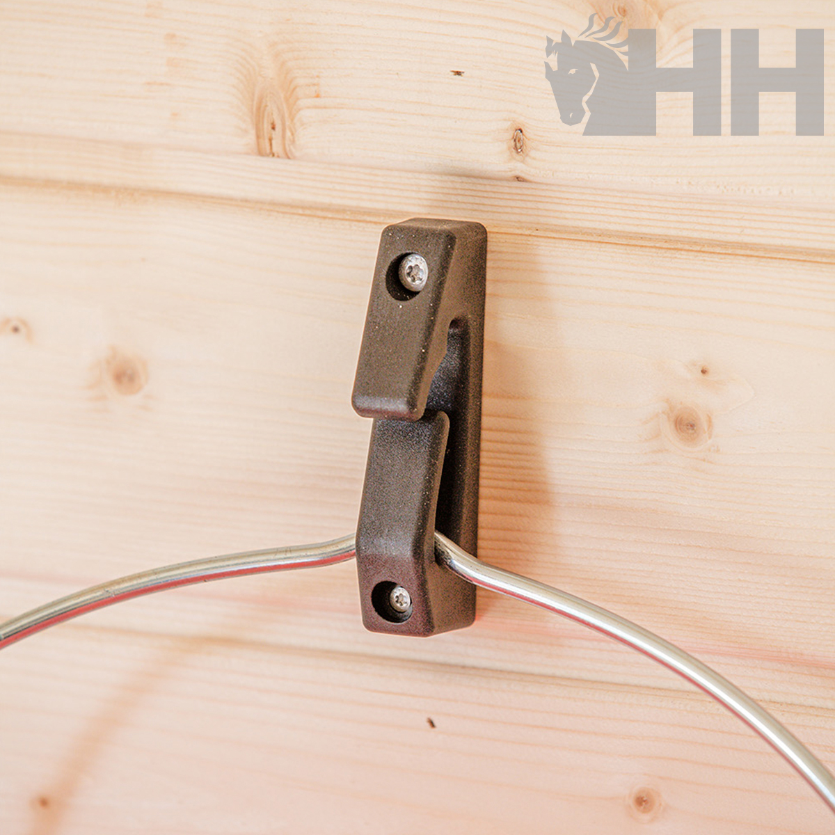 Gancho de plástico muy resistente, compatible con cubos con asa de hasta 8 mm de diámetro. Bordes redondeados y suaves con orificios para tornillos empotrados para evitar que los animales se lastimen. Gracias a su robusta construcción, estos ganchos son ideales para usar en establos, granjas y otros entornos exteriores e interiores. Cada juego de ganchos para cubos incluye 2 tornillos para una fácil instalación. Simplemente colóquelos en la ubicación deseada y comience a colgar sus cubos. Diseñado para un uso versátil y práctico.