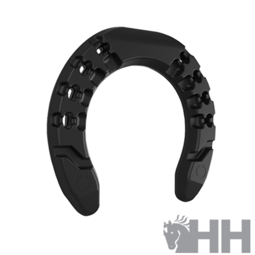 Y es absolutamente excepcional para los caballos que trabajan en cualquier superficie dura, como los caballos de la policía montada, caballos de Trec y caballo de rutas de montaña y senderos. La herradura absorbe impactos y vibraciones excepcionalmente bien, por lo que es mucho más cómoda que una herradura de acero.