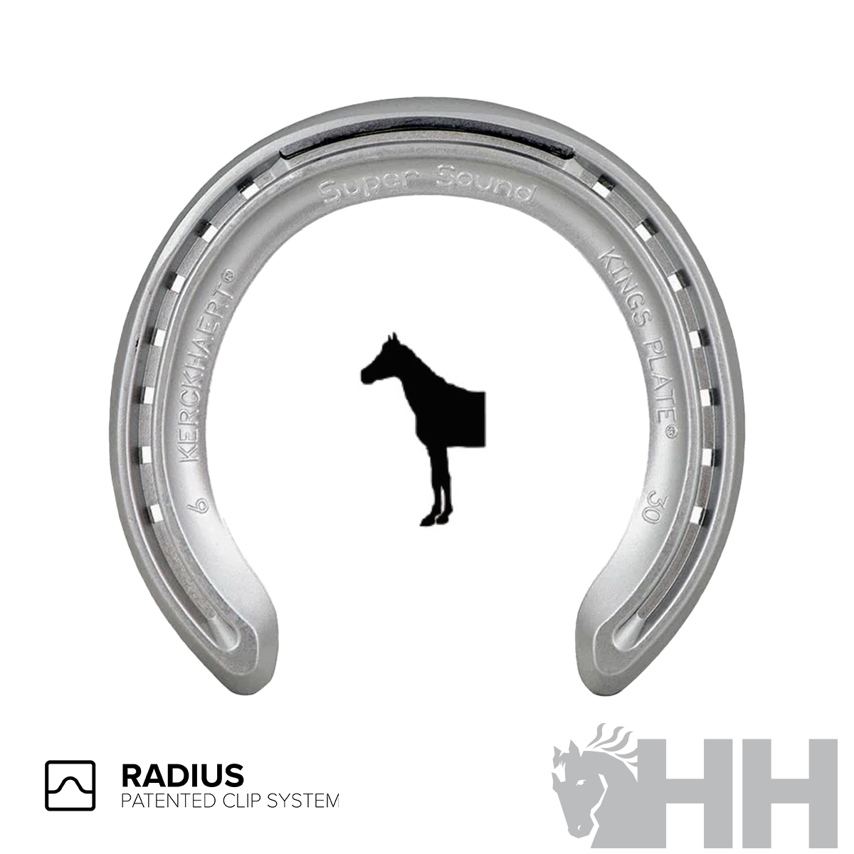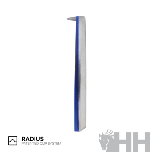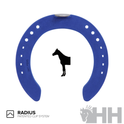 herradura de carreras con sistema radius (las pestañas se situan fuera del area de la herradura y asi no merma la supercicie de apoyo ),esta cubierta por completo de una capa de poliuretano que sirve para absorver los golpes y vibraciones y asi dar mas comfort.Disponible para manos en diferentes tamaños
