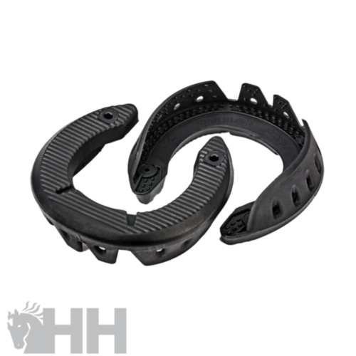100% poliuretano material resistente. tienen una forma simetrica , dispone de varias pestañas que se pueden modificar facilmente para ajustar al casco, para pegar se puede usar (02291 o 02292)