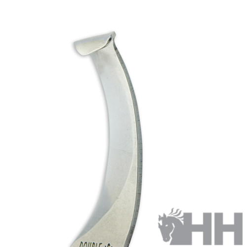 Extremo de la hoja con acabado en pico para utilizar como limpia-cascos.