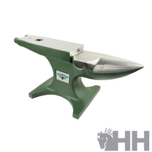 Yunque estándar, tacón redondo y cónico con levas de torneado, anclaje de talonera de 1" y agujero para punzón. Altura: 222 mm, superficie de trabajo 520x100 mm, medida base de apoyo en mesa 246x220 mm. Peso 35 Kg.