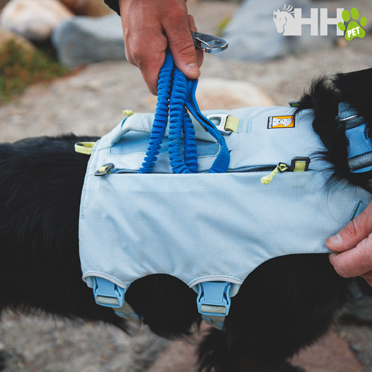 • Transporte estable del equipo: las alforjas con corte radial y peso hacia delante y los «flopper stoppers» mantienen la mochila y su contenido estables contra tu perro.