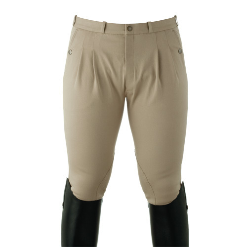 Pantalón hombre con pinzas y dos bolsillos frontales laterales con cierre de corchete. Forma en la culera del mismo tejido que todo el pantalón y refuerzos en el interior de las rodillas también del mismo tejido.