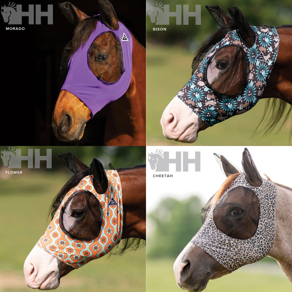 Diseñado pensando en la comodidad del caballo. La lycra lisa, elástica y transpirable se adapta perfectamente a la cara del caballo. La malla alrededor de los ojos y oídos permite una visión clara y mantiene alejadas a las moscas y los insectos.